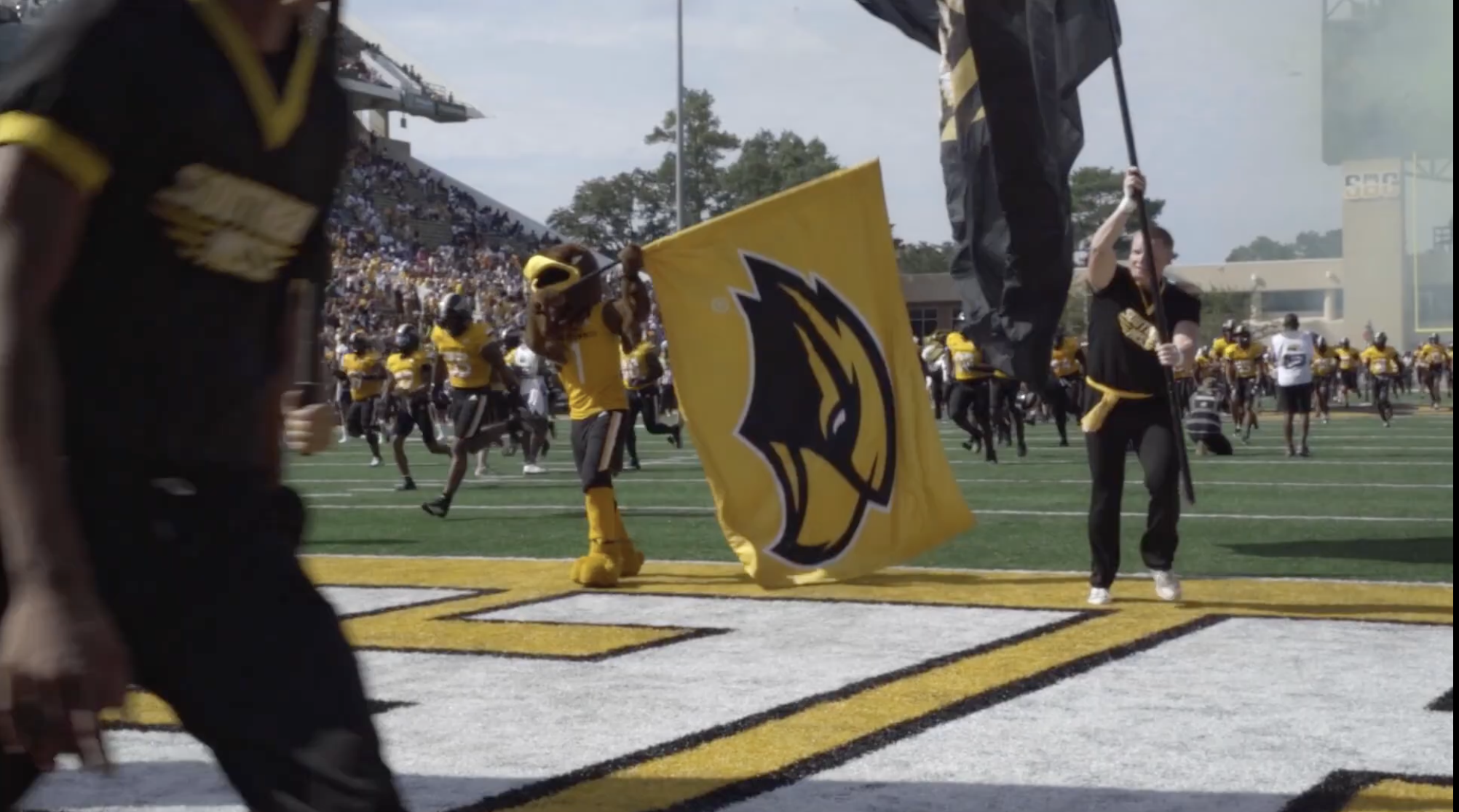 Big-game energy from pregame runout to postgame moments.